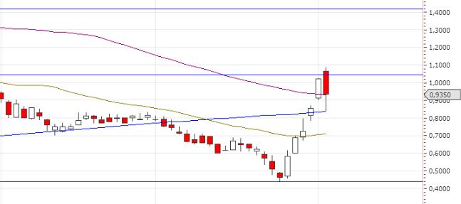 Nun heisst es in den nächsten Tagen das ~ 1,05€er Retracement (Widerstandslinie) nachhaltig zu überschreiten und als zukünftige Unterstützungslinie zu etablieren, hier haben wir dann ein neues Kaufsignal. Das nächste Retracement - und das ist als 61,8er in der Charttechnik auch das Entscheidende - liegt dann bei 1,42€.