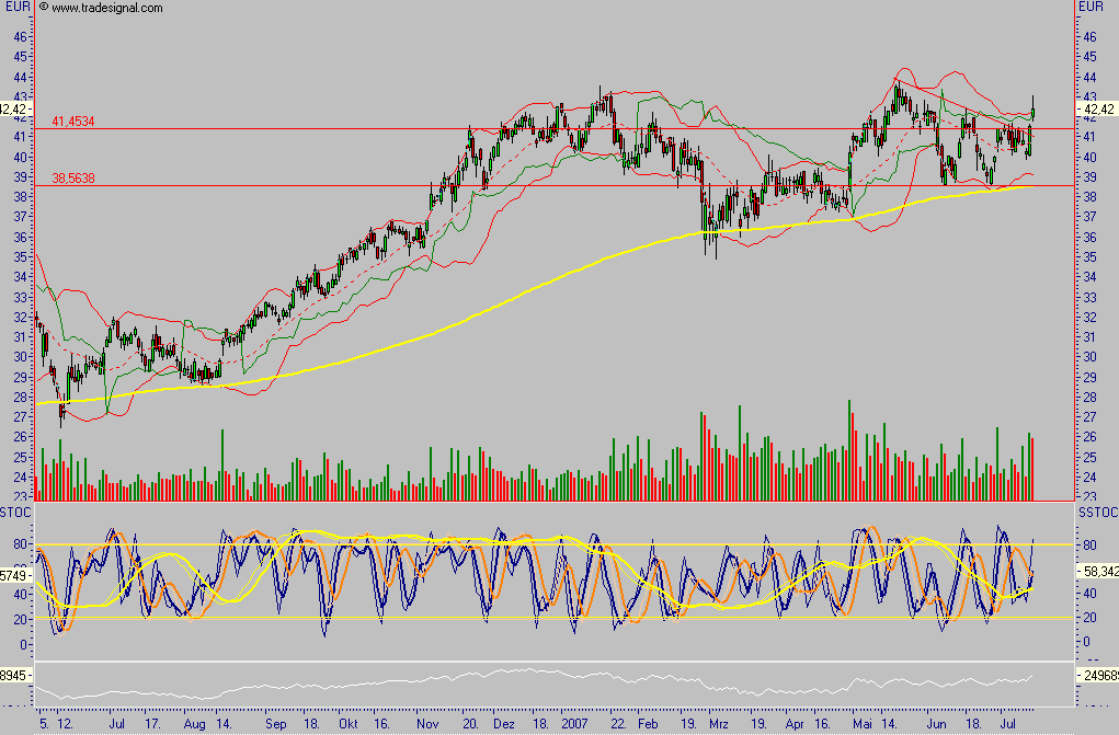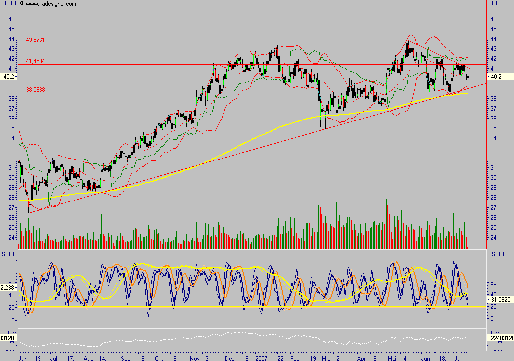 Die Jahresziele, die Heitmann ebenso wie die Mittelfristplanung wiederholte, hatte das Management bei der Vorlage der Quartalszahlen Anfang Mai bereits konkretisiert und unter anderem ein Zuwachs beim bereinigten EBITDA um einen mittleren bis hohen einstelligen Prozentsatz in Aussicht gestellt. Die mittelfristigen Ziele bis 2009 umfassen eine EBITDA-Marge, die insgesamt in Höhe des Schnitts der Wettbewerber liegt, für alle Einzelgeschäfte mindestens 5% erreicht sowie ein Investment-Grade-Rating.