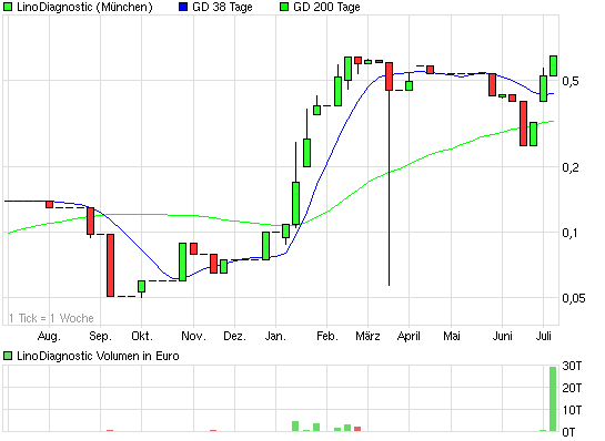 und der Chart sieht richtig gut aus, wenngleich ein paar Umsätze noch fehlen. Mit so gut wie keinen Umsätze hat sich der Kurs massiv erholt, sollten ein paar mehr Umsätze kommen könnt's (schnell) weiter aufwärts gehen...