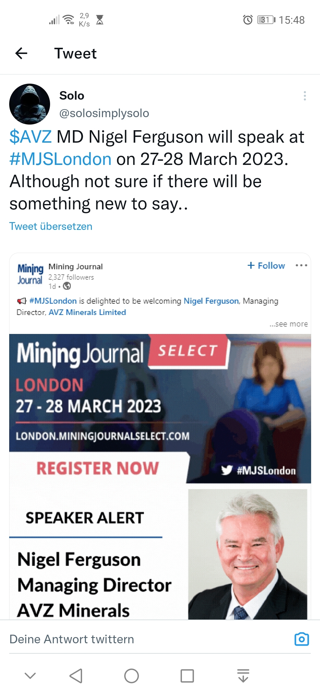 Nigel hat bei den RS bereits angedeutet, dass wir nicht mit Zijin oder sonst jemandem verhandeln werden, der keinen Rechtsanspruch hat. Man verhandelt nicht mit Parteien, die versuchen, sich durch korrupte Prozesse einen Anteil am Geschehen zu verschaffen. Wir sollten auch nichts hören, was von AFR kommt. Sie haben bereits angedeutet, auf welcher Seite des Zauns sie stehen, und das ist nicht im Interesse von uns Aktionären.