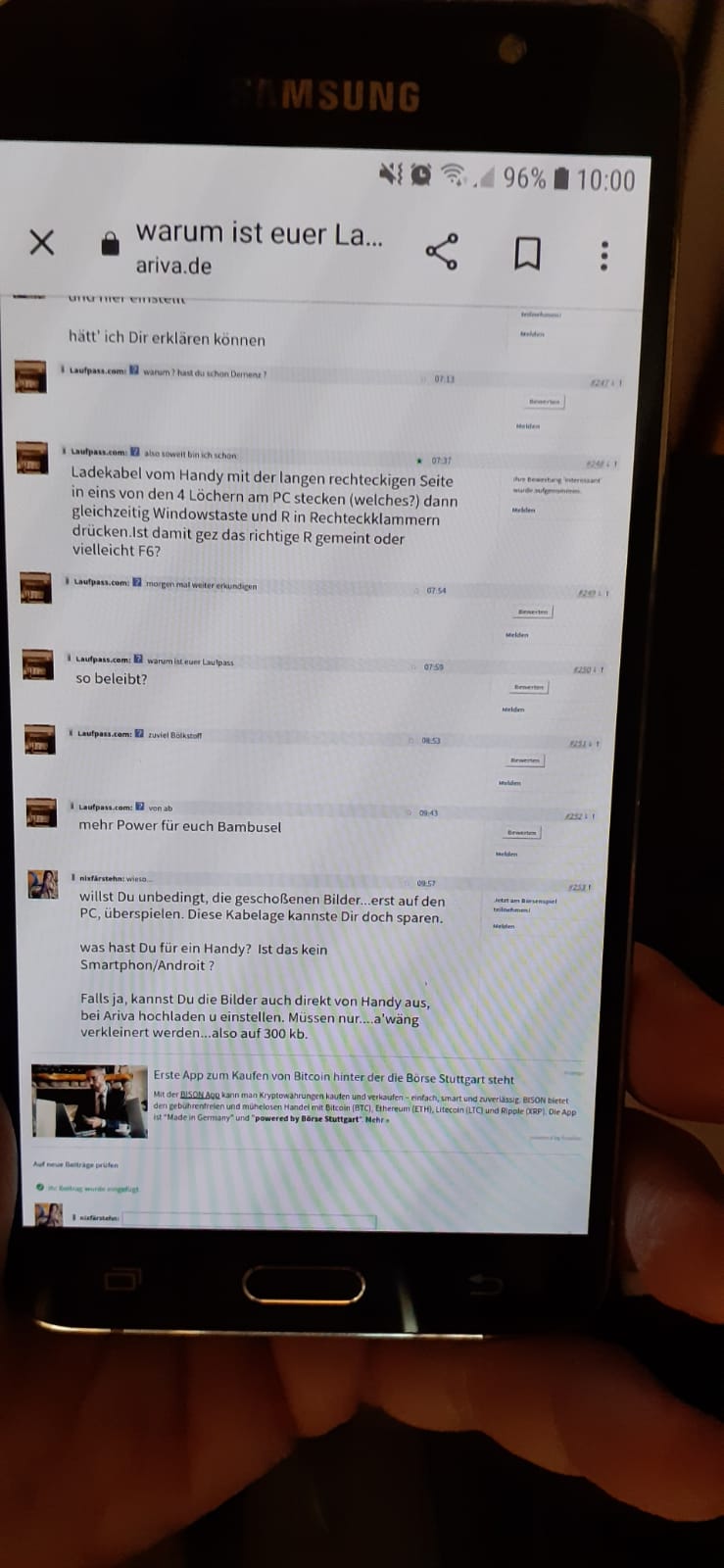 ich bin totaler PC Laie,irgendwann schaff ich das,hab 200 Fotos auf Handy.Das letzte Foto was du mir geschickt hast ist von PC Ariva Bild,also doch zum Fotos hochladen mit PC arbeiten.Ich brauch eine detaillierte Anweisung.Um was zu wissen wie was funktioniert und wenn man im Internet nachfragt steckt auch das Internet nach 30 Jahren noch in den Kinderschuhen.