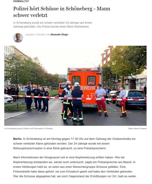Berlin Schöneberg: Polizei hört Schüsse - Mann schwer verletzt - Berliner Morgenpost - https://www.morgenpost.de/berlin/polizeibericht/...hwer-verletzt.html