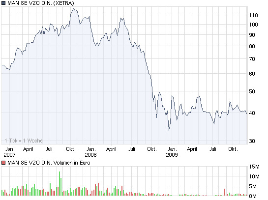 Die MAN-Vorzüge stehen immer noch bei rund 40 Euro. Bloß die MAN-Stamma­ktie ist nach oben gepusht worden, von hyperliqid­en Spekulante­n, die nicht auf fundamenta­les achten, sondern auf Übernahme zocken. Jetzt entweicht die heiße Luft. Normalerwe­ise sollten Stämme und Vorzüge ähnlich bewertet sein.