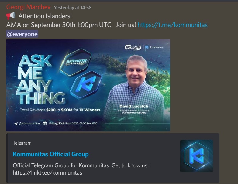 AMA on September 30th 1:00pm UTC. Join us! https://t.me/kommunitas