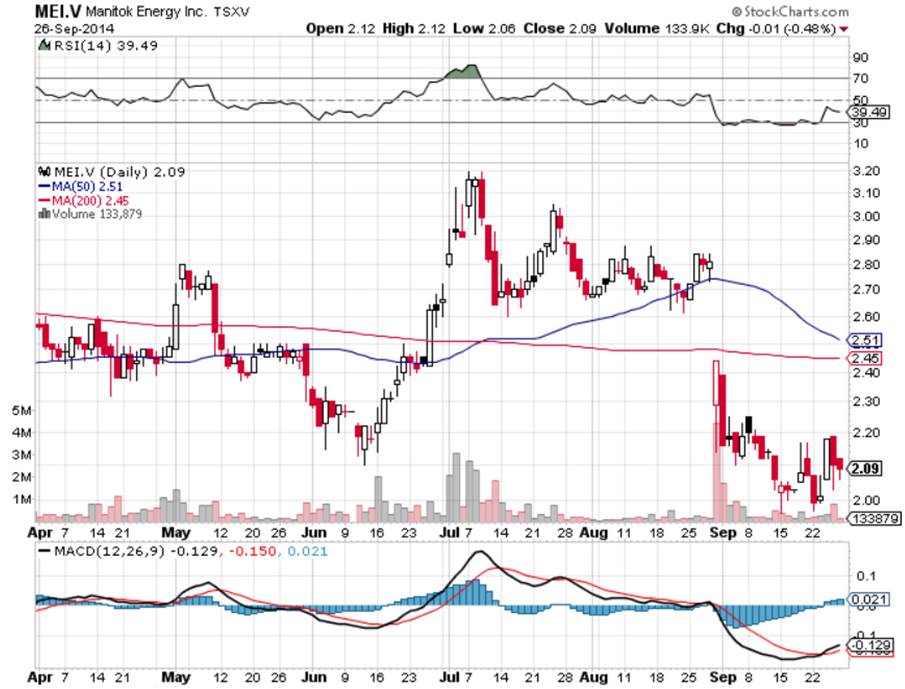 Im allgemeine­n Abwärtsstr­udel der Ölaktien ist Manitok bisher eine rühmliche Ausnahme. Der Kurs hält sich wacker. Mal sehen wie lange noch, denn die 50-Tagesli­nie ist jetzt unter die 200-Tage-L­inie gesunken. Allerdings­ war die Nachricht von gestern ausgesproc­hen gut: