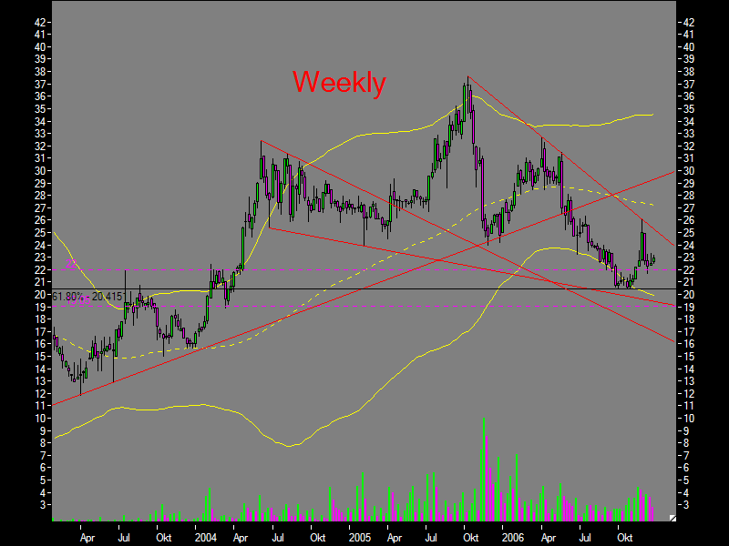 Der Rücksetzer in den letzten Tagen kann aber auch bedeuten, daß der seit April anhaltende Abwärtstrend sich erneut fortsetzt.