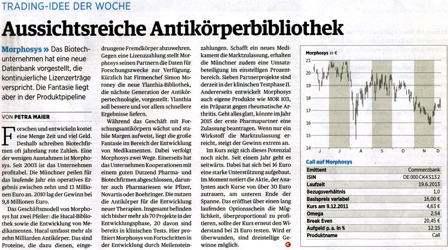 BO 25/12 Morphosys kaufen, die langfristige Erfolgsstory scheint völlig intakt.