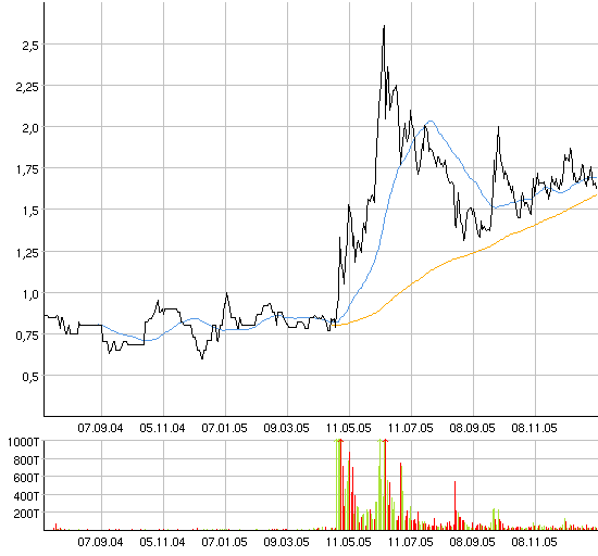 Vor einer Woche notierte die Aktie noch bei ca. 2 US$. Wir schrieben damals: "Die stark gestiegenen Handelsumsätze könnten sogar ein Indiz dafür sein, dass der Wert jetzt in einen Aufwärtstrend wechselt. Die Aktie befindet sich derzeit in der Nähe eines Allzeit-Tiefs und ist auf diesem Kursniveau immer noch ein absolutes Schnäppchen." Abonnenten, welche unserer Empfehlung folgten, konnten bis jetzt schon große Gewinne erzielen; in der Spitze stieg die Aktie bis auf über 3 US$.