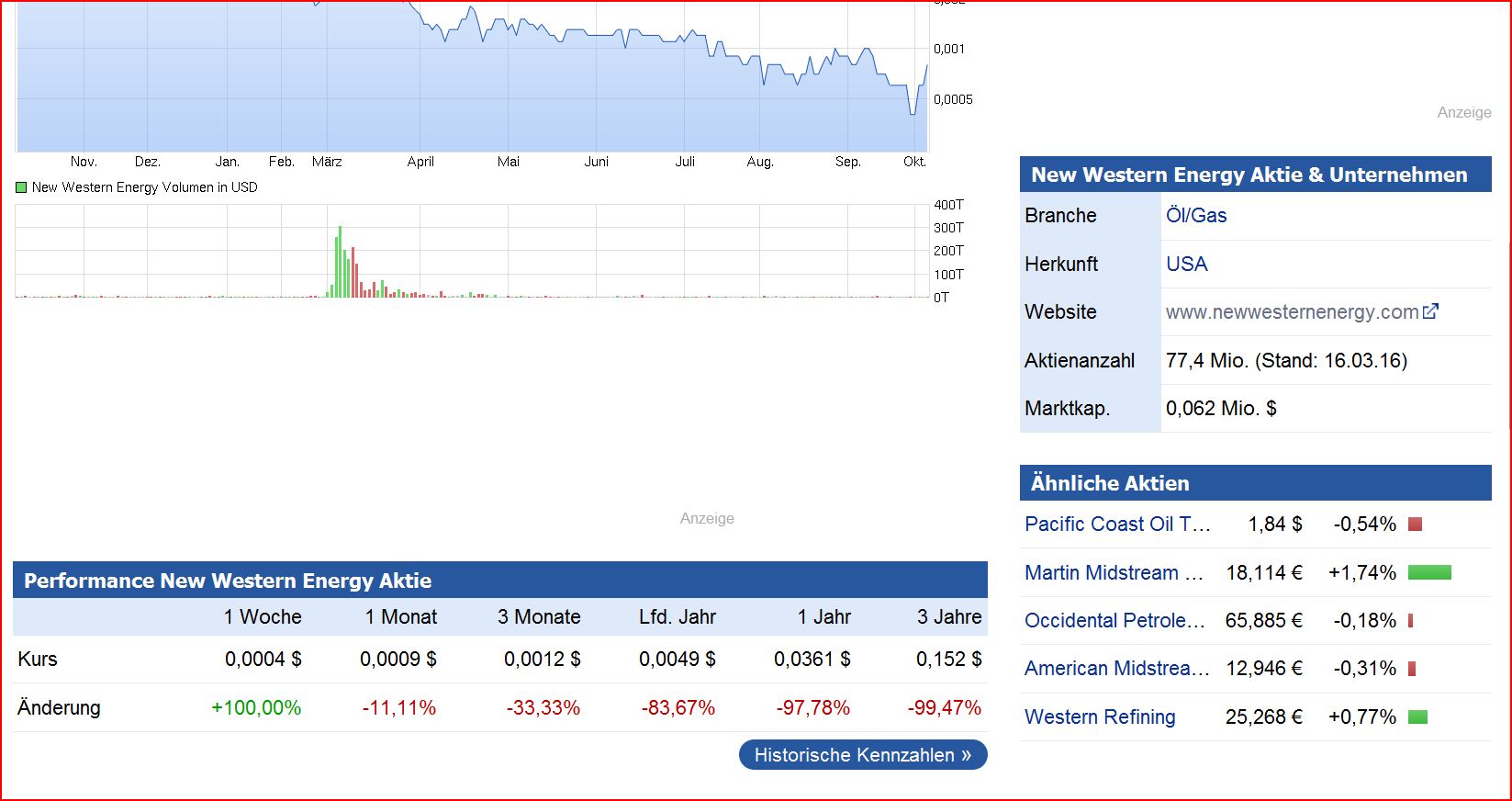 Ist ein Öl u. Gasförderer aus den USA , durch den Preisverfall ist der momentane Wert von 1,13 $ auf 0,0007 $ gefallen .