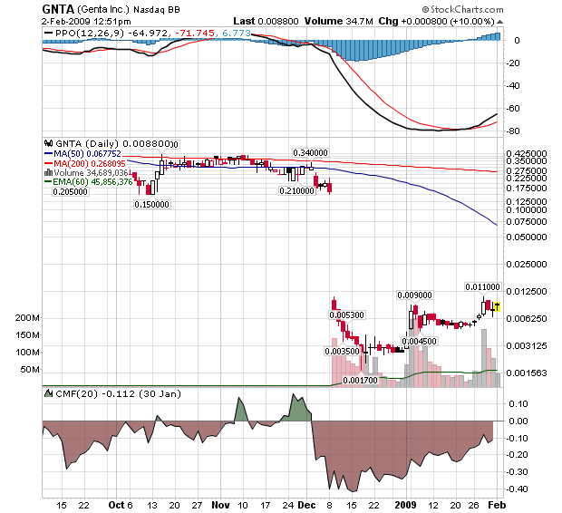 Vor Jahren hatte ich mich mit einer Fondsmanagerin eines Biotechnfonds unterhalten, die GNTA mit kleiner Gewichtung im Portfolio hatte. Sie sah damals die Chancen bei 50/50.