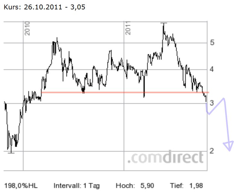 Wenn du schon versuchst anhand der Charttechnik ein Verkaufssignal aufzuzeigen, dann mach das bitte mit einem geeigneten Chart und nicht mit einem mit 08/15 Linien...!