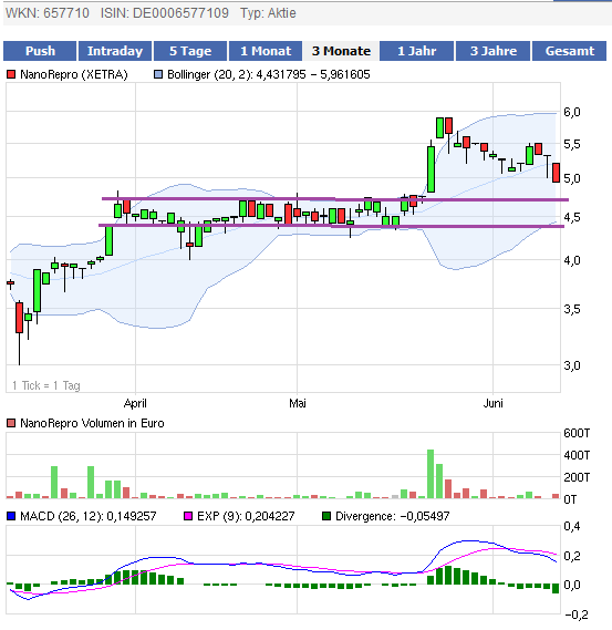 Doch Sie kam zurück und durchbrach heute die 5 Euro was charttechnisch nicht gut ist.