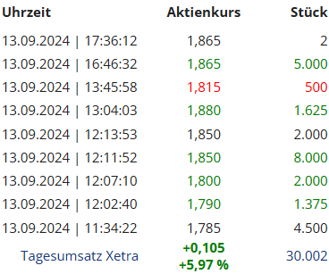Der Ausverkauf könnte vorbei sein. Das Orderbuch bei Xetra mit niedrigen Kursen ist dünn. Es fehlen die News seit 6 Wochen.