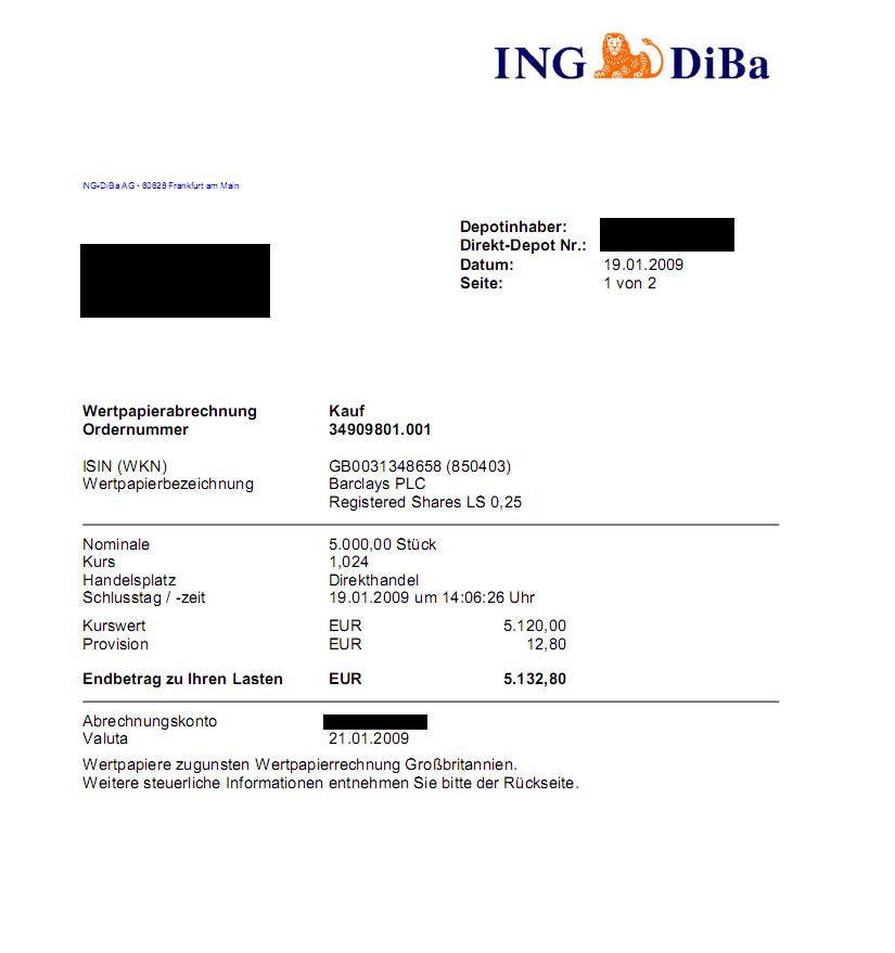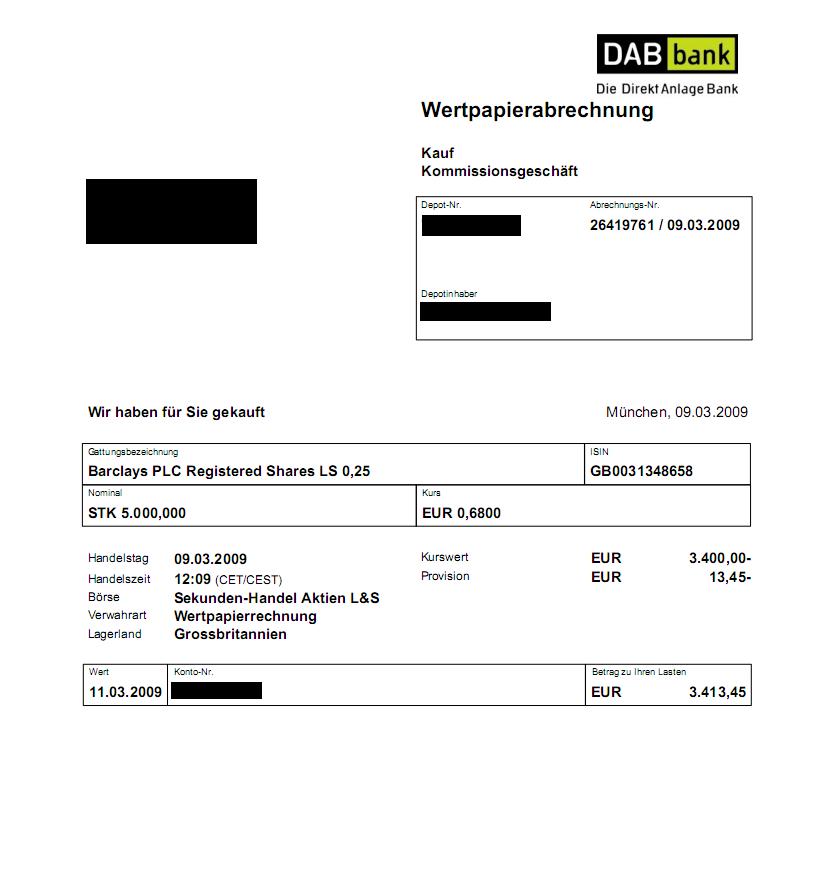 Also, zuerst einmal die Abrechnung für Vedanta Resources (die berüchtigten 6,67 EUR - incl. Transaktionskosten -, die hier einer der beonders Unbedarften einfach mal so in den Barclays-Thread geworfen hat), dann die fünf Abrechnungen für die Barclays-Käufe.