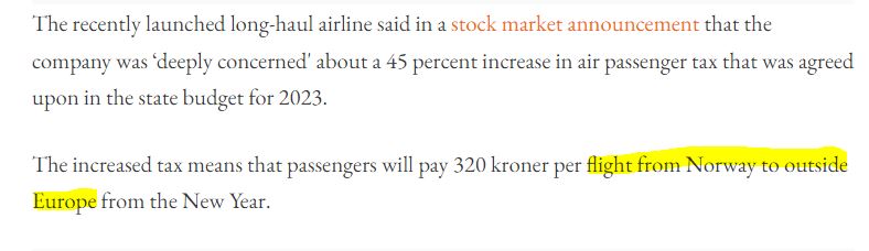 Denn die Steuer bezieht sich ja auch auf Flüge aus Norwegen in das Nicht-Europäische Ausland, wenn ich es richtig verstanden habe. Und damit ist NAS recht wenig betroffen. Norse Atlantic natürlich schon...