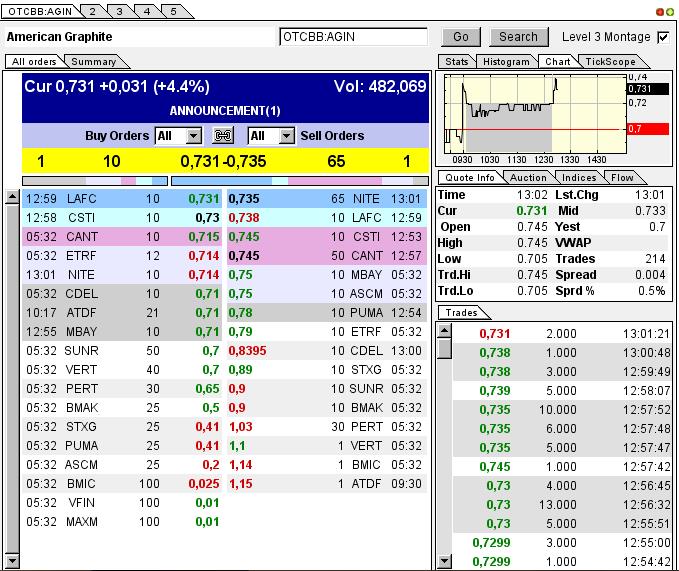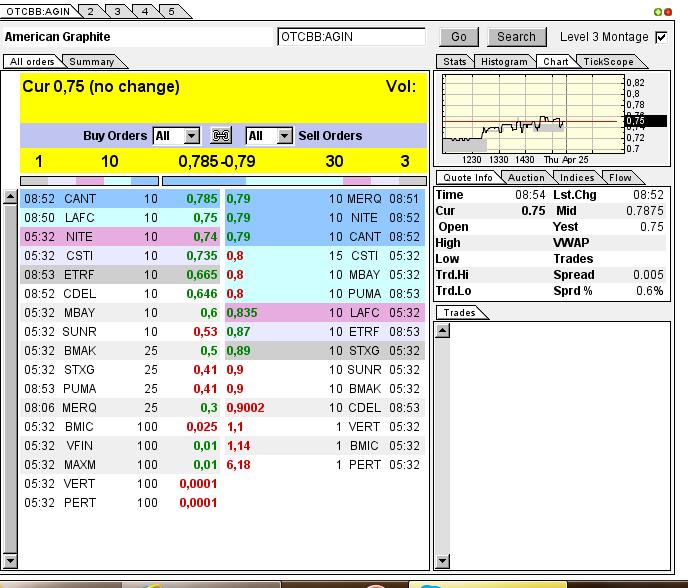 American Graphite Technologies Inc. (OTCBB: AGIN ) ist ein börsennotiertes Mineralerschließungs- und Technologieunternehmen, dessen Wertpapiere an der US-amerikanischen Börse (US Stock Exchange) unter dem Symbol AGIN und an der Berliner Börse unter dem Symbol A8G (WKN:A1KBDQ/ISIN:US02640K1079) gehandelt werden. Durch seinen Fokus auf der Erschließung von Graphitabbauprojekten und der Vermarktung von Technologien und Verfahren zur Herstellung von Graphen will die Firmenführung die Rentabilität des Unternehmens steigern und den Wert der Unternehmensanteile maximieren. Graphen wird als Wunderstoff des 21. Jahrhunderts beschrieben. Man glaubt, dass Graphen trotz seiner Flexibilität stärker als Stahl und leitfähiger als Kupfer ist. Diese Eigenschaften machen es zu einem idealen Ersatzmaterial für Silikon, mit dem dünnere, schnellere, kostengünstigere und flexiblere Geräte und Energiequellen möglich werden. Da Graphen aus Kohlenstoffatomen besteht, ist es ist ausreichender Menge vorhanden und kostengünstig herzustellen. Im Jahr 2010 wurde den Wissenschaftlern Andre Geim und Konstantin Novoselov für ihre bahnbrechenden Experimente im Zusammenhang mit der Erforschung von Graphen der Nobelpreis für Physik verliehen. Die fortschreitende Entwicklung alternativer Energiequellen führt zu einer größeren Nachfrage nach strategischen Metallen wie Graphit. Diese Metalle haben sich in jüngster Zeit aus dem industriellen Bedarf an High-Tech-Anwendungen entwickelt, nachdem in vielen Ländern der Aufbau neuer Binnenmärkte für umweltfreundliche und effiziente Alternativenergien, Smart Grid-Lösungen und militärische Systeme forciert wird.