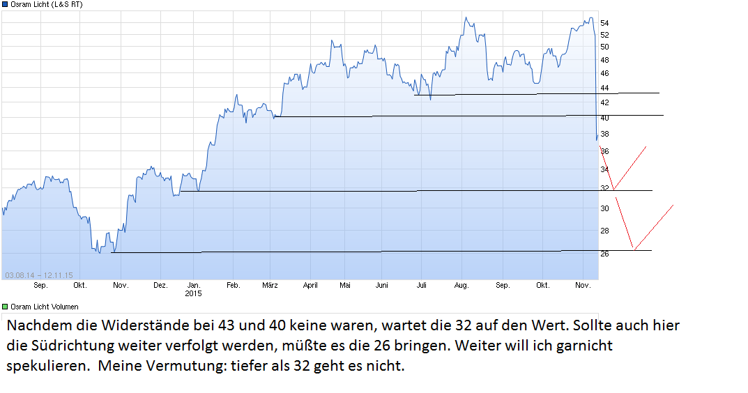 Was Osram angeht - die Zahlen sind gut, und die hohen Investitionen nächstes Jahr werden den Anlegern versüßt werden durch eine gleichbleibend akzeptable Dividende, die vor allem ermöglicht wird durch den Beteiligungsverkauf und dem Aktienrückkauf. Aus Anteilseigner-Sicht ändert sich also eigentlich garnichts, die "Durststrecke" beim echten laufenden Gewinn nächstes Jahr wird anderweitig ausgeglichen.