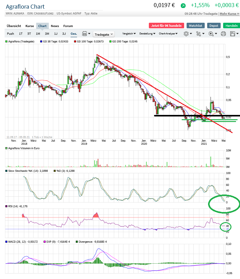 Denke, daß bei 0,018€ - 0,016€ schluss ist, Agraflora bereitet sich gerade auf den großen Sprung nach oben vor ! Die Aktie ist sowas von unterbewertet!!! Jetzt im Sommer wird richtig was passieren, ihr werdet noch Augen machen !