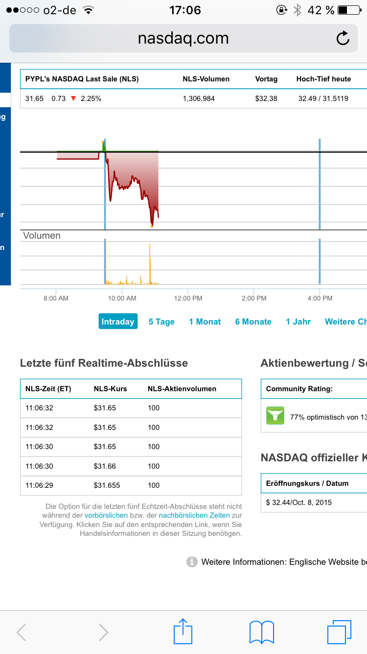wer ist mit seinem PayPal Investment aktuell im Plus ?
