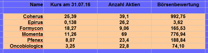 Dieser Wert ist erst seit etwa 6 Wochen an der Nasdaq Börse notiert. Hier in Deutschland ist der Biosimilarwert noch nicht handelbar.. Er kommt aber auch mit auf die Liste. Anfang nächsten Jahres wird er mit in den Index aufgenommen. Doch durch die erst kürzliche Notierung in Amerika würde mir dieser Wert alle Chartgrafiken versauen. Nachrichten werde ich aber auch zu Oncobiologics veröffentlichen.