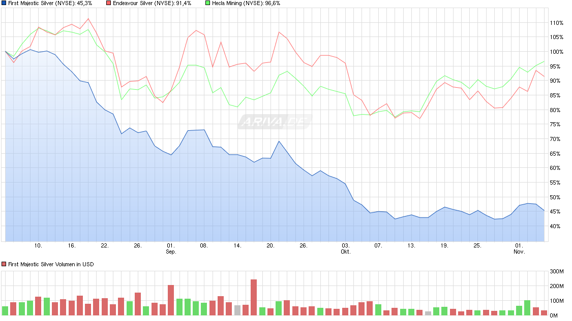 First Majestic Silver verkaufen und umschichten in Endeavour Silver und Hecla Mining.