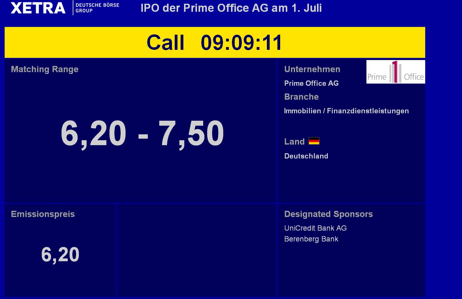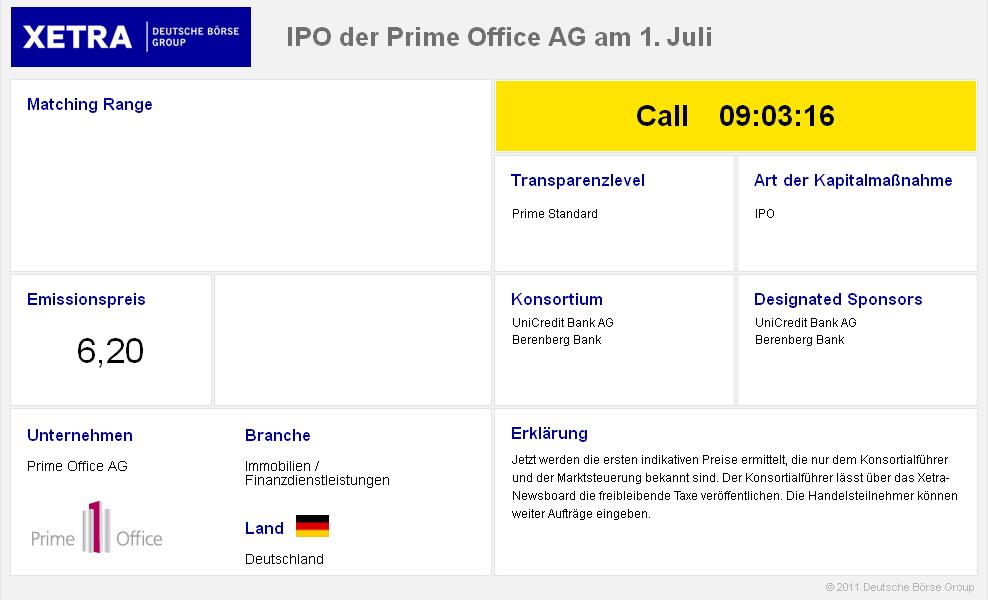 Prime Office Prime Office nennt Preisspann­e und plant erste Börsennoti­erung am 24. Juni 2011