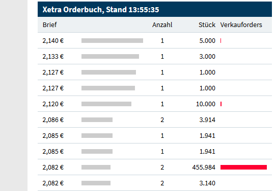 Daher sind Orderbücher meist eh nutzlos, weil die meisten Kleinaneleger sie immer falsch interpretieren. Man denkt immer, große Orders im Verkauf bewirken fallende Kurse. Dabei sind sie meist eher anziehend für den Kurs.