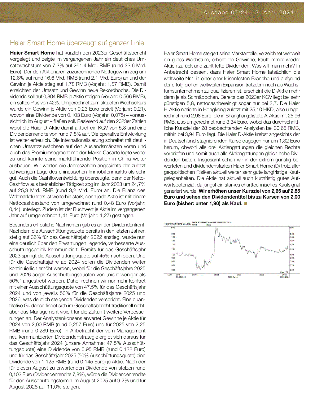 . . AUSGABE 09/2024 | 2. MAI 2024 ("Haier mit sehr starkem Q1"):