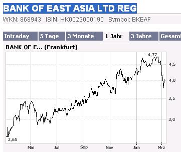 Die BANK OF EAST ASIA LTD. hat Heute nach der Korrektur wieder ihren Weg Richtung Norden begonnen.