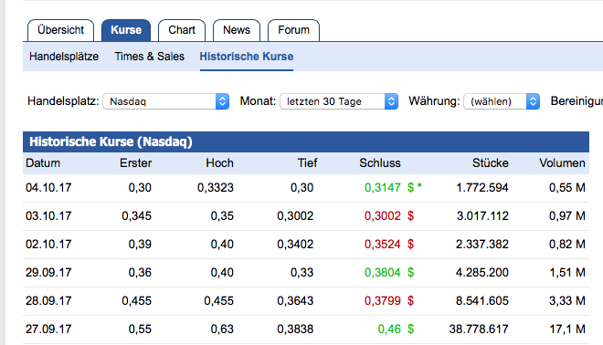 Am 27 September stand die Aktie noch im HOCH bei 0,63$