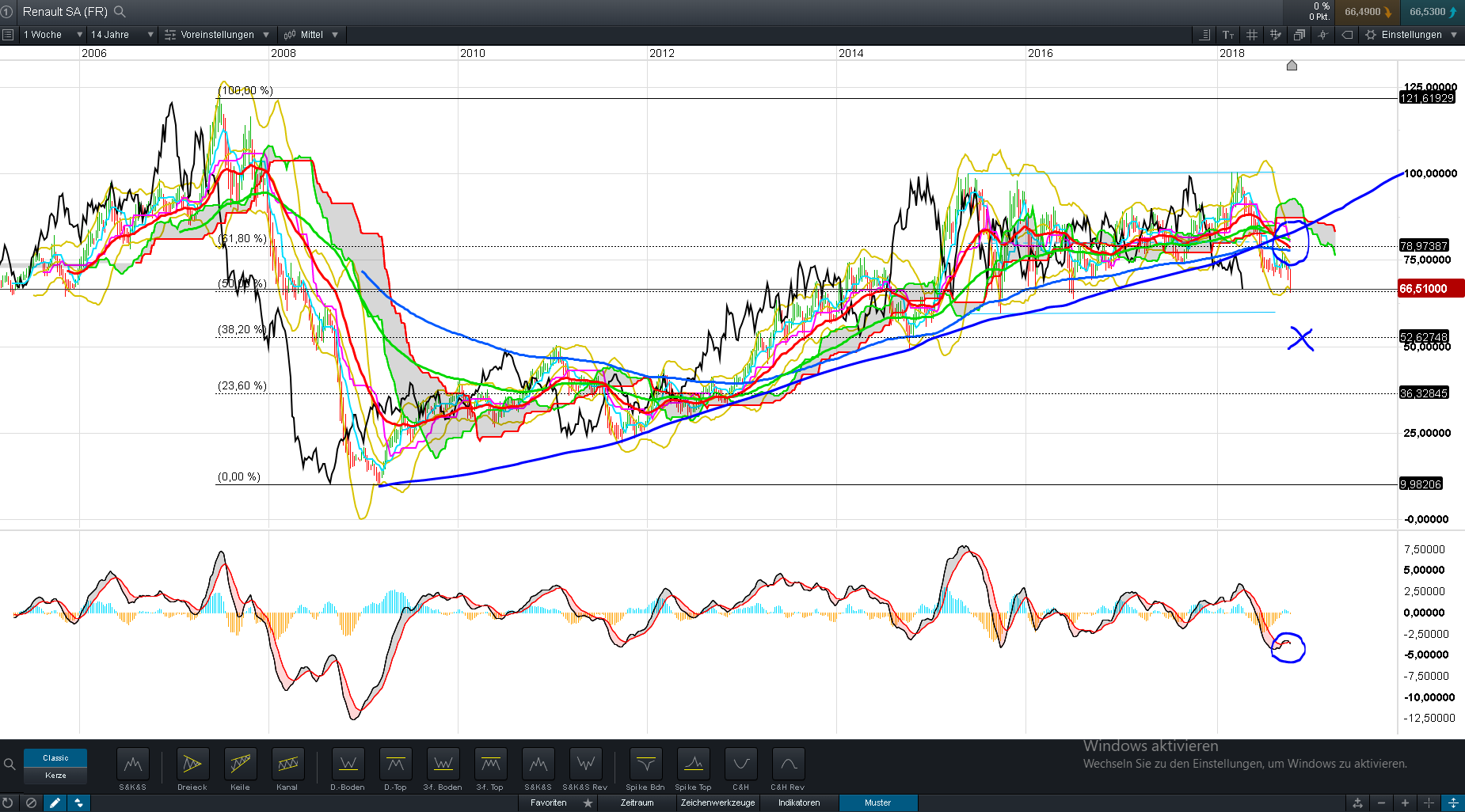 Man ist nur kurz davor ein neues Mehrjahrestief zu machen und neue Verkaussignale damit auszulösen. Fällt man unter die Unterstützungsregion um 69,90, dann könnte das nochmal einen direkten weiteren Ruck nach unten geben. Der große Abwärtstrend ist ja ohnehin seit langem völlig intakt und daher weiterhin keine Kaufsignale zu sehen. Wer seinem Depot richtig schaden wollte, der dürfte Chemie&Autowerte auf hohem Niveau gekauft haben und sich ab dann konsequent Augen und Ohren zugehalten haben anstatt zeitnah anschließend zu handeln und neue ökonomische Realitäten zu akzeptieren anstatt sich die Welt weiter schönzureden. Abkühlung der Weltwirtschaftt ist ja Fakt (wurde gestern nochmal bestätigt) , die Zinsen ziehen recht zügig an (T-Bonds schon deutlich über 3%) und der Handelskrieg der USA mit China und Europa wird sicher die Autobranche mit am stärksten treffen. Wie man in z.B. 2014 sehen konnte, kann die Renault-Aktie in schwachen Börsenzeiten mit schwachen Unternehmenszahlen problemlos zügig Richtung 50€ zurückfallen. Daher ist die mögliche Fallhöhe bei einem Kurs von z.Z. um die 70 € eben noch immer nicht gering. Somit scheint hier erstmal weiterhin große Vorsicht geboten solange das Weiße Haus in der Hand eines Dilettanten ist, dem die nachhaltigen ökonomischen Auswirkungen seinen Irrsinns nicht bewußt sind, die am Ende auch negativ auf die USA zurückschwappen werden. Sichere Häfen sind momentan ganz anderswo zu suchen. Viele blauäugige Anleger lassen sich immer wieder zu leicht vom günstigen KGV der Vergangenheit einlullen und wollen nicht erkennen wie klare Änderungen im markoökonomischen Umfeld die Zukunft von Branchen aus konjunktursensiblen und zyklischen Branchen auch wieder schnell anderes aussehen läßt, wie z.B. bei Autobauern. Kennt man ja schon von anderes Spätphasen einer spätreifen Hausse wie Ende der 90er Jahre oder 2007. Muß natürlich jetzt nicht so dramatische Züge wie damals annehmen, wenn nicht wieder irgendwo ein schwarzen Schwan hinzukommt. Aber es kann eben durchaus erstmal eine längere Durststrecke wieder geben für europäische Autobauer. Man kann nur hoffen, daß irgendeiner mal dem Trunp die Pillen wegnimmt die notorischen Wahnsinn auslösen. Ansonsten muß man eben warten und hoffen, daß die Amtszeit von Trump auf 4 Jahre beschränkt bleibt.