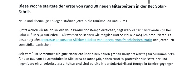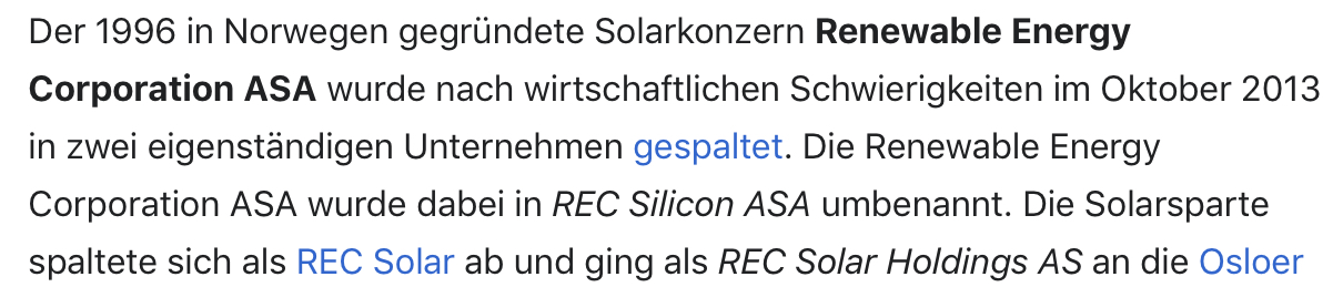 Ihr beide schreibt hier im Thread der Rec Silicon. Rec Solar und Rec Silicon sind zwei verschiedene Unternehmen (waren früher zusammen). Also daher meine Bitte an Euch beide nichts mehr bezüglich REC Solar hier posten, danke!