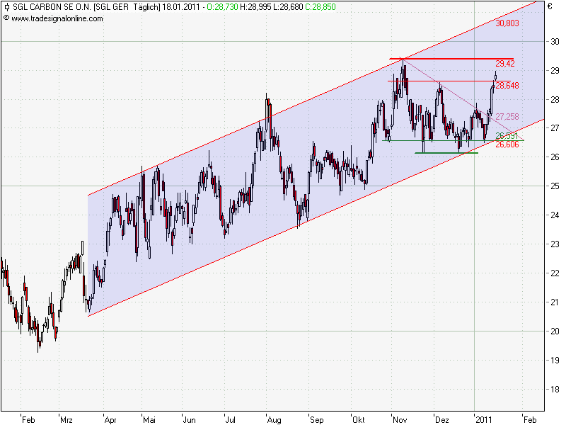 Wenn die SGL heute auf diesen Level schließt sollte dann auf jedenfall Platz bis zu 29,42€, und wenn der Wiederstand fällt gehts aufwärts...
