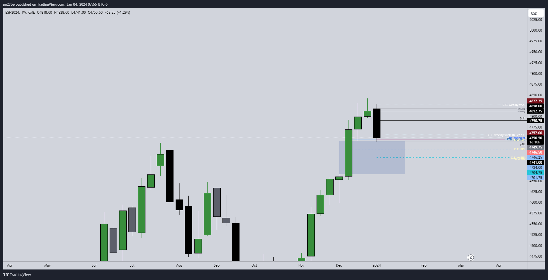 vielleicht noch zum Freitagstief, ES und NQ bis zum C.E. daily wick Freitag. Sollte aber später weiter hoch mMn
