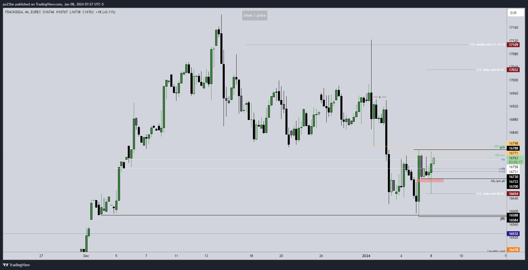 FDAX hat unten die equal lows bei 16588 geholt - unter diesen ist im weekly auch ein fair value gap - danach gab es im 1hr/4hr einen market structure shift nach oben inkl fair value gap - von daher sollte mMn MINDESTENS das Freitagshoch noch einmal geholt werden