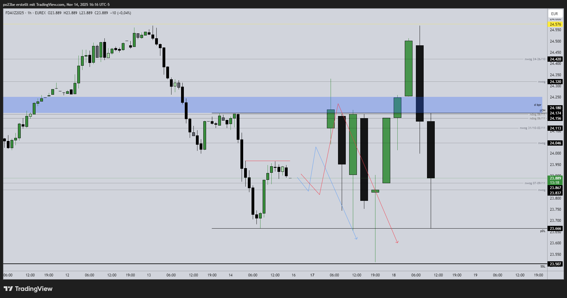 leg mir nächste Woche einen swing short im fdax ins depot, bin großteils unterwegs - da will ich die 400-500 Punkte mitnehmen bis 23507. das ist der klarste trade für mich