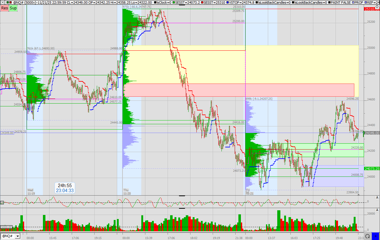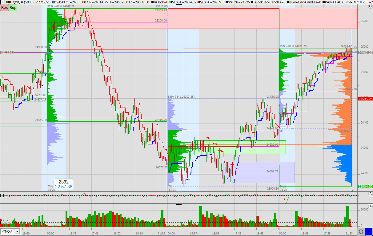 Das overnight Tief wurde in der RTH nochmals getestet. Der grüne Block wurde erst mal nach unten durchbrochen, ging dann beim Anstieg direkt hindurch. Somit ist dies für mich die erste Support-Zone. Weiter unten ist noch der blaue Bereich, welcher auch noch mal getestet werden könnte.