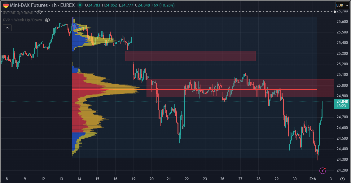 Januar ist vorbei, deshalb wieder die Monats-Charts zur Orientierung. Alles zwischen dem ATH und etwa 24500 ist in der grossen Sicht Seitwärts-Range. In solchen Bereichen stelle ich immer wieder grössere Bewegungen in beide Richtungen fest. Würde mich nicht überraschen, wenn wir wieder Richtung Januar Hoch gehen würden.