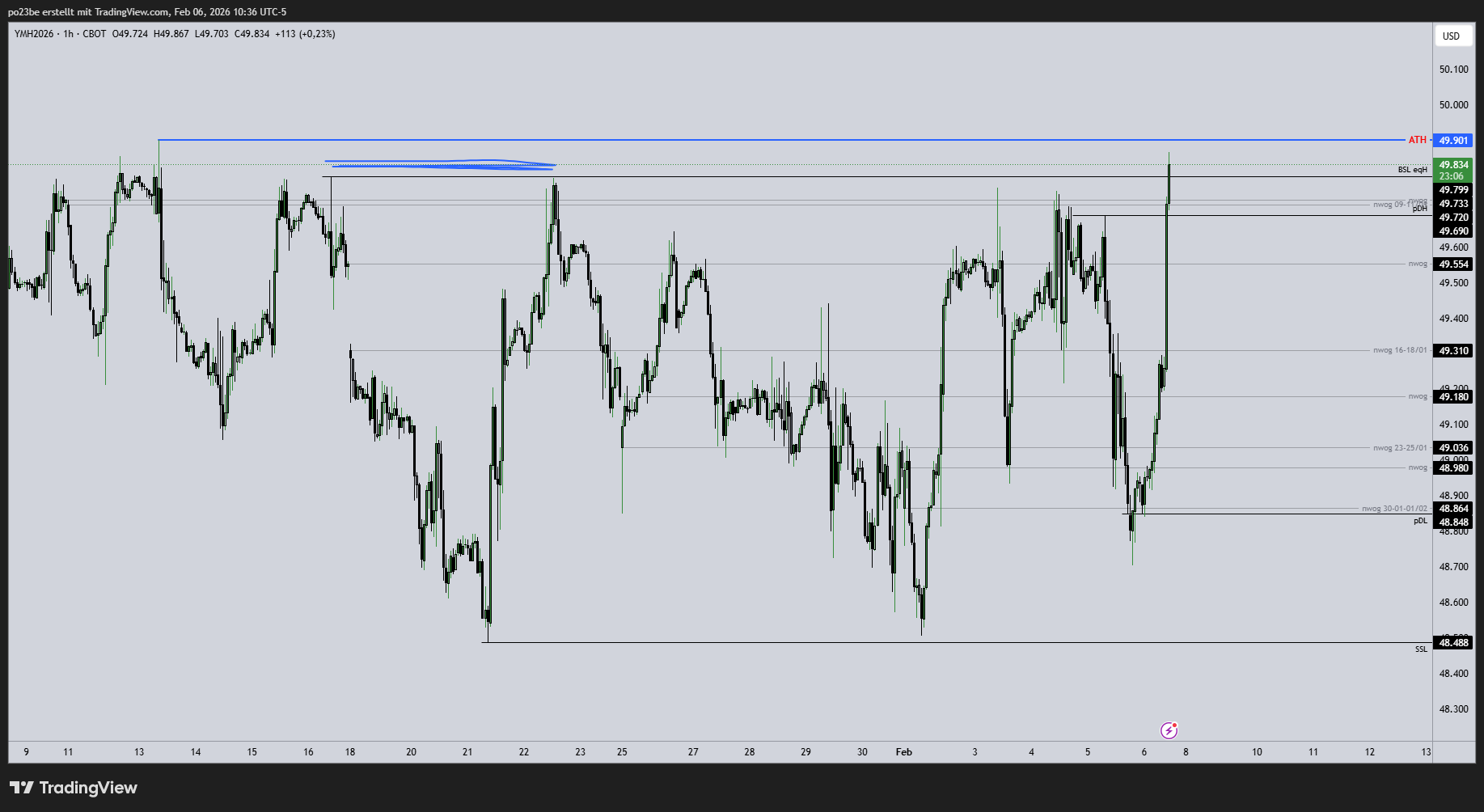 beim YM hatte ich vor einiger Zeit mal die equal highs bei 49799 erwähnt - die hat er sich heute geholt - vielleicht geht er noch auf 50k - das weiß ich nicht - beim ersten Shortzeichen würde ich den aber shorten - er wird auch unter 48488 kommen...