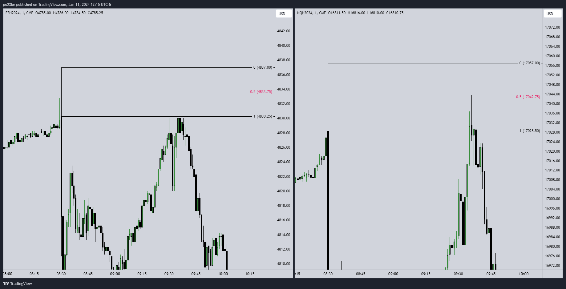 hoffe es hat keinen erwischt - dachte der ES schafft es über den Wick - der NQ hat es bis 50% geschafft und der ES nicht einmal. War long und bin dann bei +15 Points ca raus.