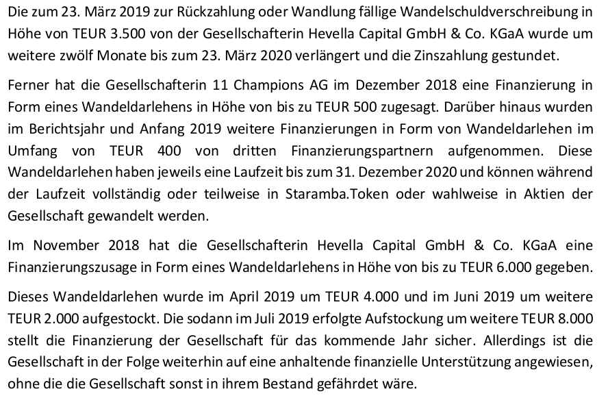 Die Starambar befindet sich durch die hohen Verbindlichkeiten und den sogar gestundeten Zinszahlungen bereits längst im Zugriff Hevella Capital. Sollte die Kapitalerhöhung kommen, dann wird dies zu Bedingungen geschehen, die der Hevella Capital endgültig die Beherrschung der Staramba sichert und die Kleinaktionäre werden durch Kapitalschnitt und anshcließender Kapitalerhöhung ihren Anteil am Unternehmen aufgewässert bekommen.