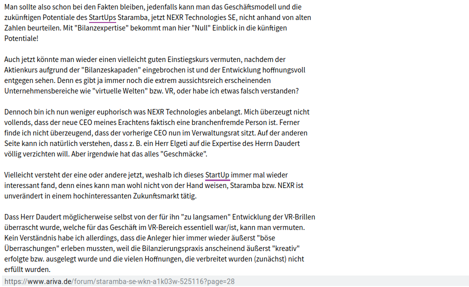Startup? Das Management hat sich aber so benommen als wären sie schon so gut wie Weltmarktführer im Bereich Vitual Reality. Man schürte sogar Gerüchte, dass man auf dem Radar von Facebook sei. Die hatten doch angeblich alles was prominent ist, unter Vertrag. Kritische Fragen zur Laufzeit der Verträge/Bedingungen wurden natürlich nicht beantwortet. Wie man gesehen hat gab´s letztendlich keine nennenswerten Umsätze; die Verträge sind scheinbar alle ausgelaufen. Mit Bayern München startet man jetzt wieder bei Null. Aber warum soll´s diesmal besser klappen? Nur weil mit Elgeti ein begnadeter Finanzjongleur an Bord ist?