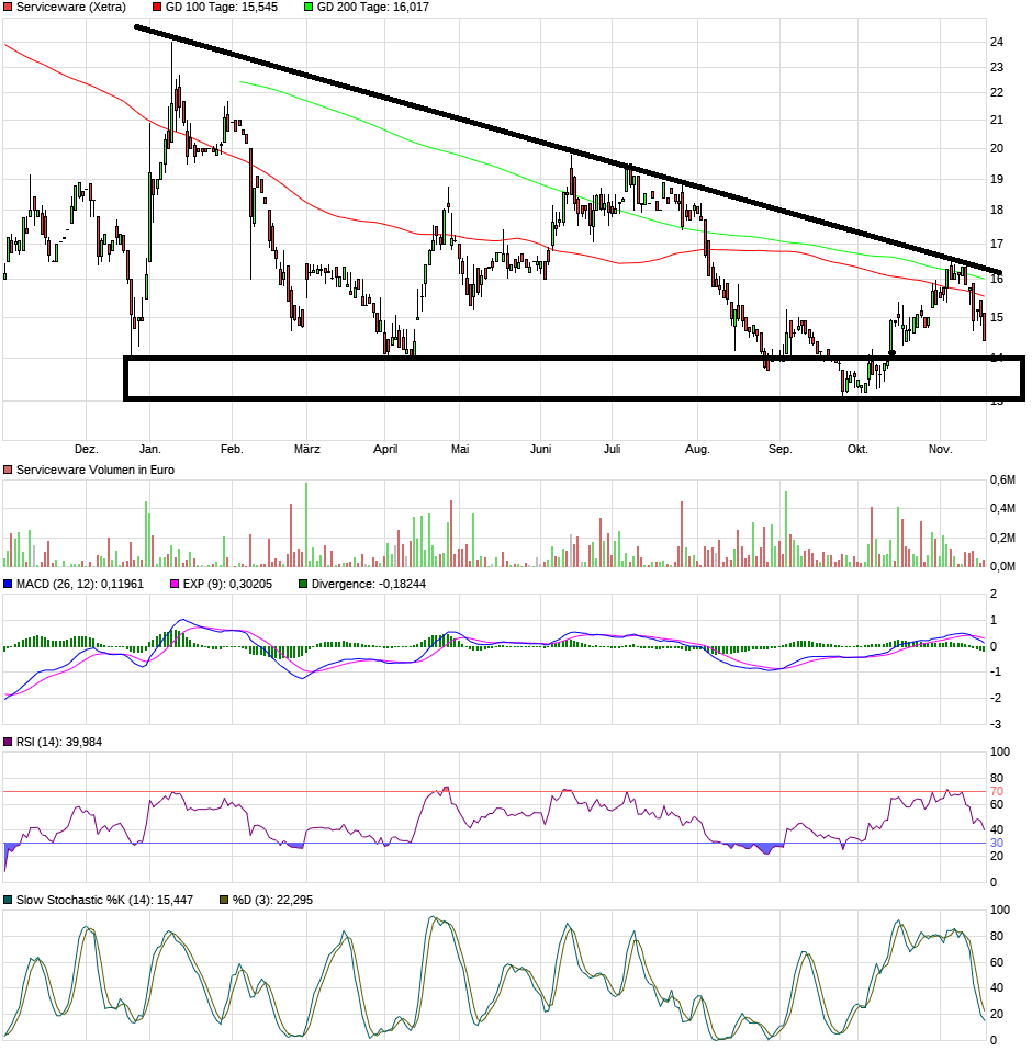 Serviceware hat einen dicken Abwärtstrend ausgebildet der aus vier gesicherten Spitzen besteht.