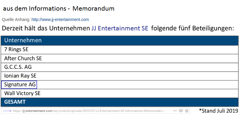 Wenn schon die signature AG (schon) nicht zu Zeiten an der JJ beteiligt war, als die TL