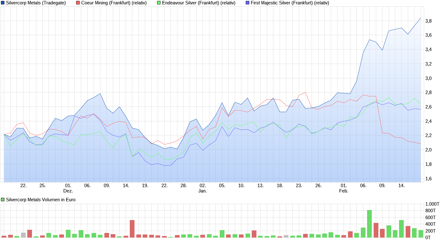 Besonders gut ist wie sich der Kurs auf hohen Niveau hält und das trotz fallenden Silberkurs­es die letzten Monate.  jetzt­ muss nur noch Silber und Gold den Boden finden und dann gehts erst richtig los.
