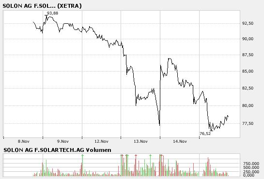 Die Aktie von SOLON legt momentan um 3,11 Prozent auf 69,55 Euro zu. (22.11.2007/ac/n/t)