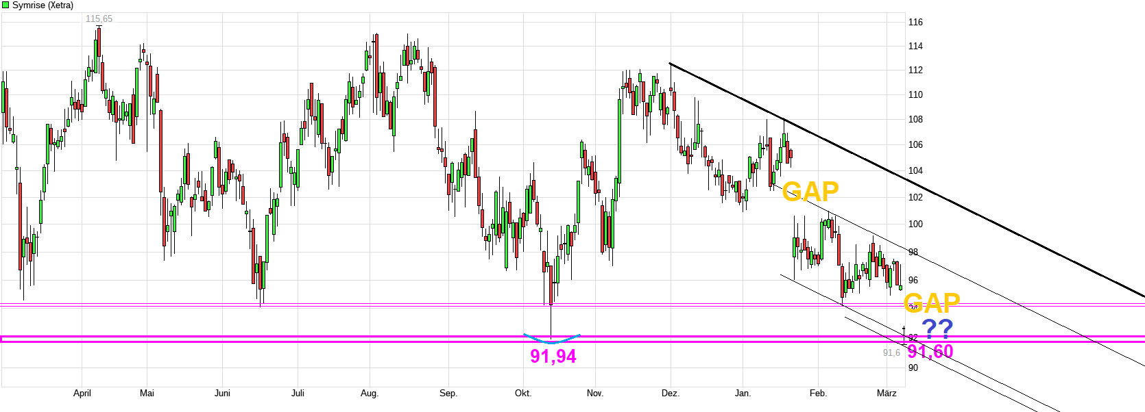 08.03.2023 Symrise: Marge schwach, Dividende enttäuscht – das drückt auf den Kurs - https://www.deraktionaer.de/artikel/aktien/...-den-kurs-20327860.html "..Symrise rechnet 2023 mit einer Profitabilität am unteren Ende seiner mittelfristigen Zielspanne.....Symrise steht derzeit unter Margendruck.."