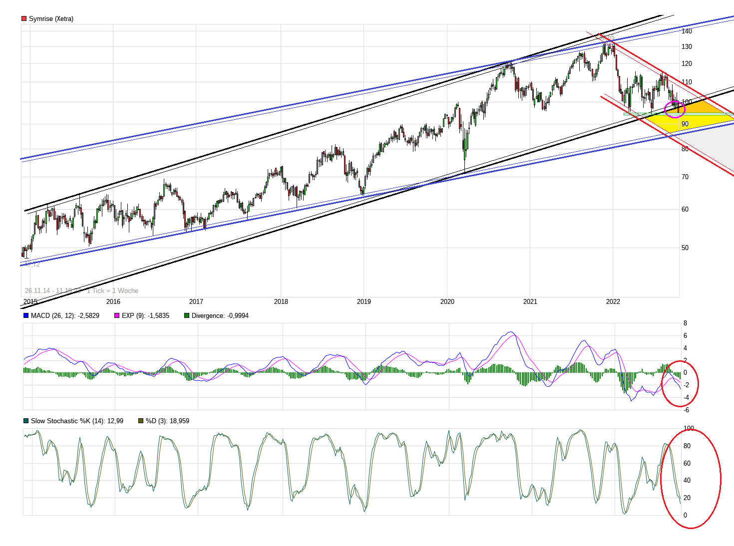 Die Wertberichtigung um 126 Millionen Euro ist natürlich ein unschöner Faktor. Muß man auch mal abwarten, ob dadurch auch die Divi etwas geringer ausfallen wird als der Markt bislang dachte. Symrise hat sich da bislang nicht konkreter dazu geäußert. Umsatz- und Gewinnzahlen laufen nicht gleichgut. Während man beim Umsatz die Erwartungen leicht übererfüllt, hat man operativ jetzt nicht genug geliefert. Wie bei vielen Unternehmen drückt die Inflation bei Energie und Produktionsmittel auf die Margen bzw. erhöht die Kosten. Ob und wie weit man die im Laufe der nächsten Monate dann doch noch an die Kunden überwälzen kann bleibt abzuwarten. Hilfreich wäre da sicherlich, wenn die Kostenseite sich wieder mehr entspannen würde durch Rückgang der Energiepreise bzw. Rückgang der hohen Inflation.