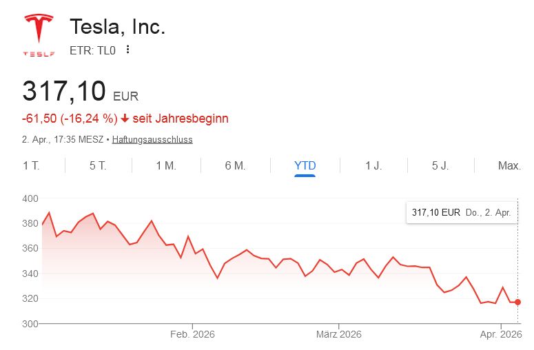 "Übersehen" wird dabei, daß im Q1 2024 noch 12,9% mehr verkauft wurden und im Q4 2025 sogar 14% mehr. Und auch, daß statt der ausgelieferten 358k Fahrzeuge 372k erwartet wurden.