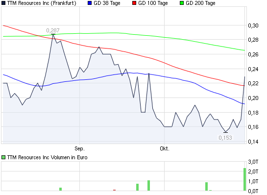Jeden Falles sollte der CHART derer TTM Resources Inc. Registered Shares o.N. (WKN: A0JKK2; ISIN: CA87306G1028; Symbol: TTMRF) Sorges-faltiglichst beobachtet werden, auf dass wir hier nicht hinterher ganz urplötzlich "überrascht" sind: